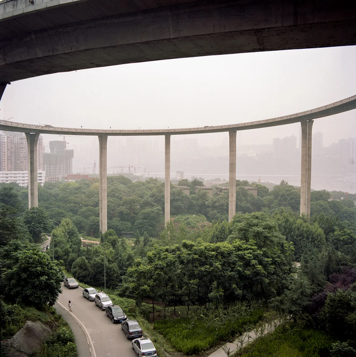 As this summer sees the last run towards the editing of my upcoming book about Chongqing, I am sharing here some of the most recent images . While traveling through the city and around, you cannot help but notice how hard the urban structure are trying to take over what was once a big farming community. Here south the the Yangtse river, a bridge arrives above a farming village with one of the highest arch junction int he world ( 420 meters ) . The Caiyuanba bridge joins the Central Yuzhong district to Nanping.